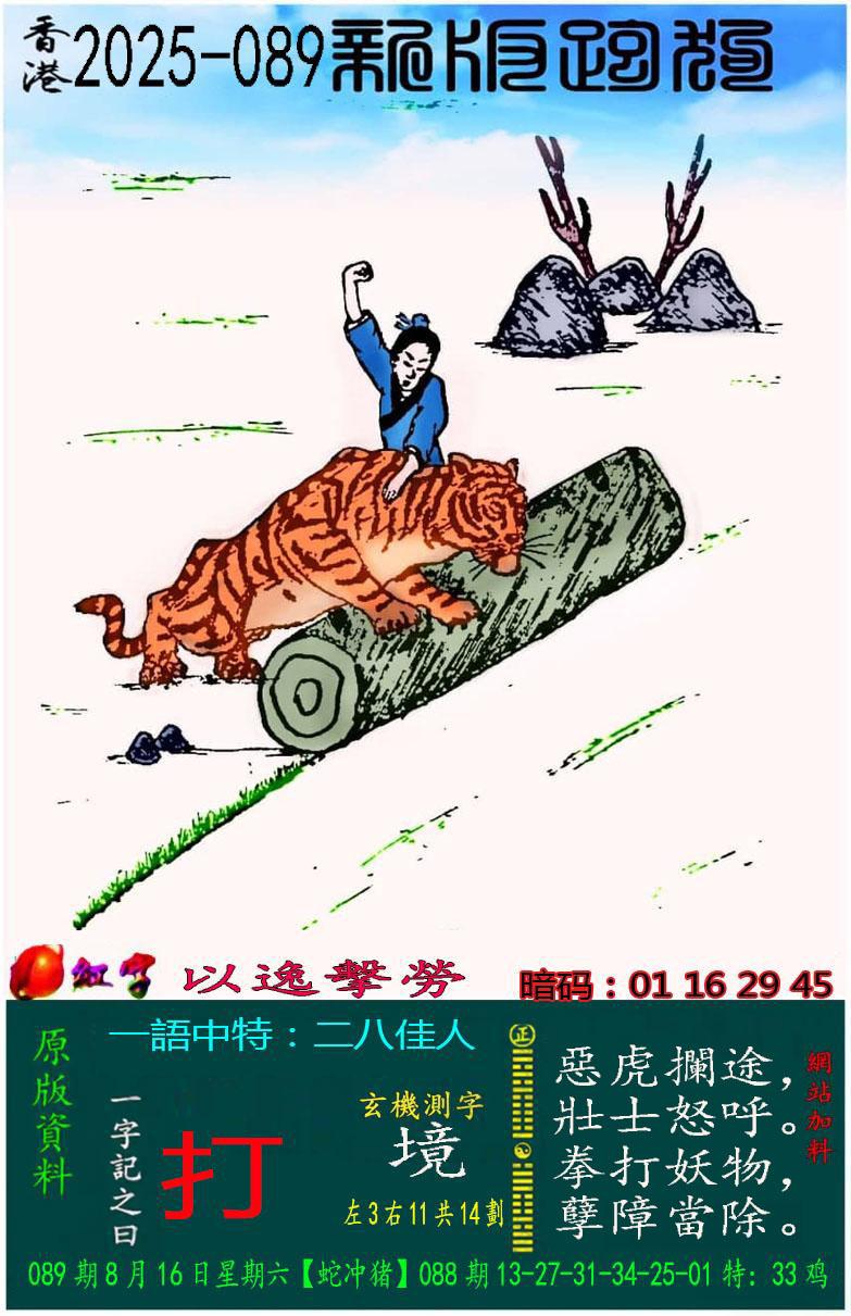 089期新版跑狗一字記之曰:【打】 玄機測字:《境》 一語中特:二八佳人