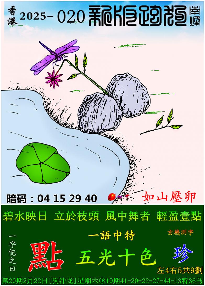 020期新版跑狗一字記之曰:【點】 玄機測字:《珍》 一語中特:五光十色