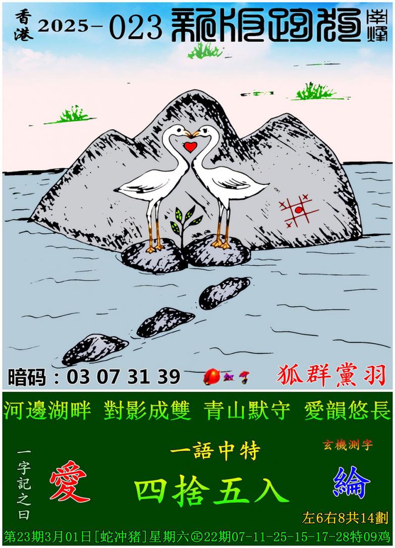 023期新版跑狗一字記之曰:【愛】 玄機測字:《綸》 一語中特:四捨五入