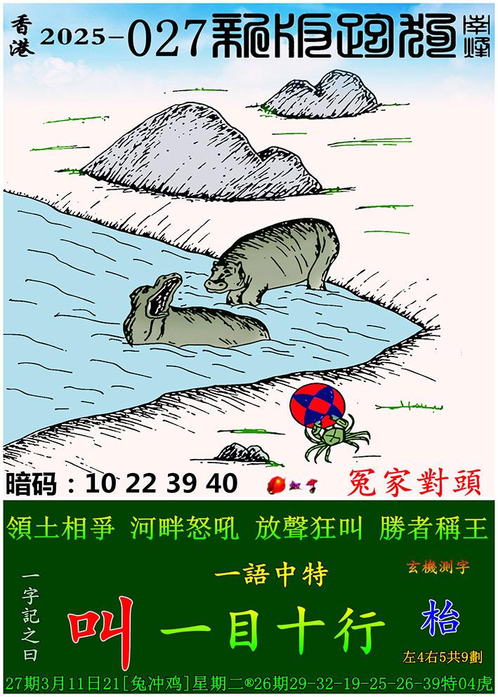 027期新版跑狗一字記之曰:【叫】 玄機測字:《枱》 一語中特:一目十行