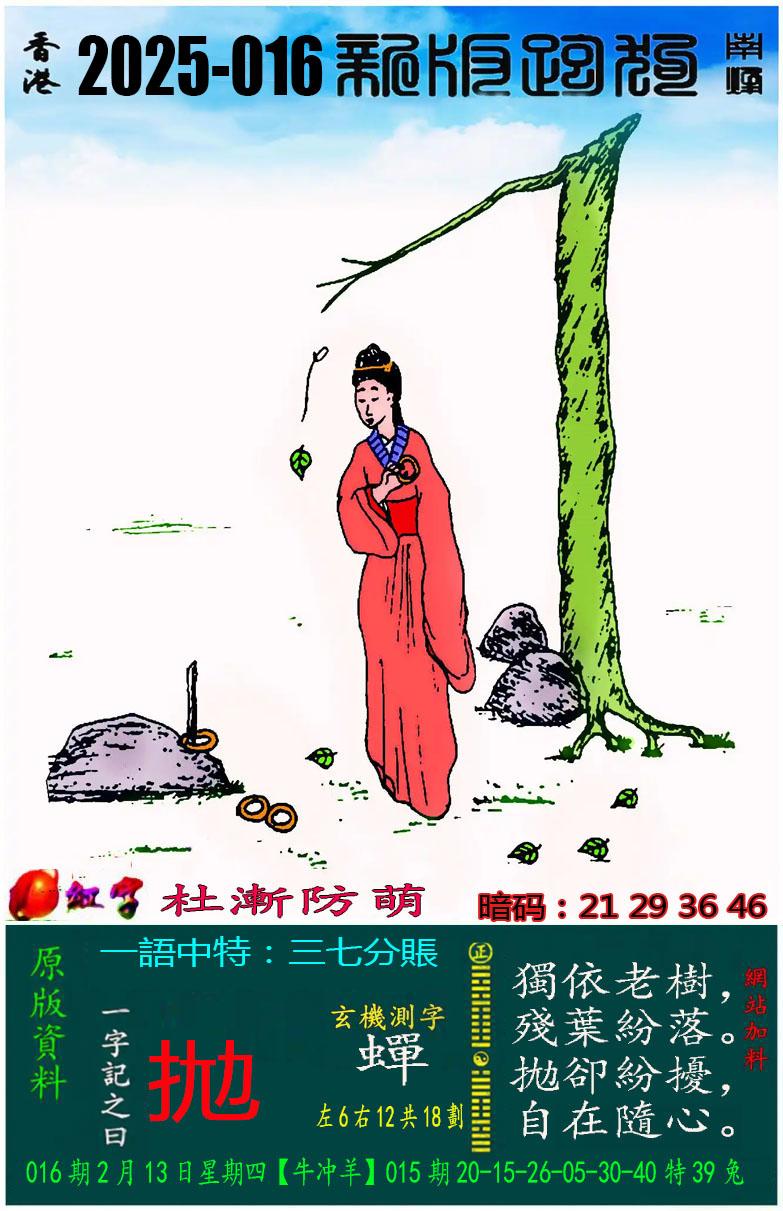 016期新版跑狗一字記之曰:【拋】 玄機測字:《蟬》 一語中特:三七分賬