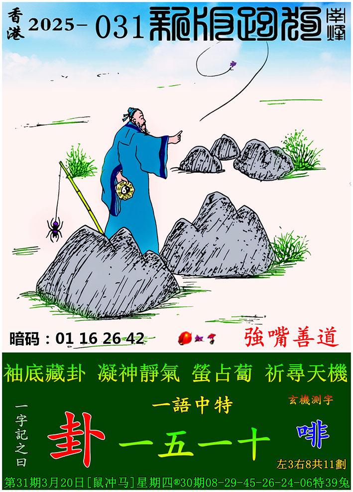 031期新版跑狗一字記之曰:【卦】 玄機測字:《啡》 一語中特:一五一十