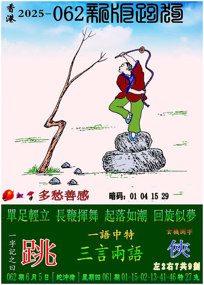 062期新版跑狗一字記之曰:【舞】 玄機測字:《俠》 一語中特:三言兩語