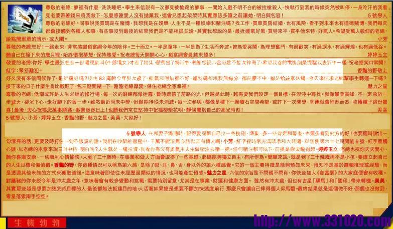 【2】.尊敬的老總好。同事說我買碼是在賭博,我想我是在娛樂,人生不是一種娛樂和賭注嗎?找工作,買車買房結婚,也有風險,看不到未來也有道德賭博,我們每天都會接觸到各種人和事,有些事沒到最後的結果我們是不能相提並論。其實我想說的是,最近運氣好黑,買特來平,買平他來特,好氣人。希望受萬人敬仰的老總,給點簡單單的暗示,或大圍。 小芳