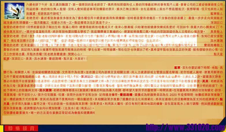 【1】.六總老師下午好:我又遇到難題了,第一個想到的是老師您了,偶然得知那個狗仗人勢的同事最近幹的事有點不人道,拿著公司的工资卻做著損害公司利益的事,她的崗位無人監督,沒有人會知道這事等到爆雷的那天,損失已無法挽回,坐在這艘船上我也不想這艘船沉,我想舉報,但又怕其他人說我雞婆,老師我該咋辦呢? 藍單敬止