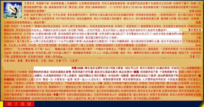 【1】.老總您好!每當睡不著,我都喜歡戴上耳機聽歌,比起閩南語國語歌,而我又最喜歡粵語歌,香港澳門是我這輩子永遠無法企及的夢,如果有下輩子,我願一定要到香港澳門創一創。最喜歡的歌手是「陳百強」的歌,那首《偏偏喜歡你》、《一生何求》是多少70-80-90後的無數回憶!不知道老總喜歡他的歌嗎?祝新的一年創富網生意興隆! 幸運8888
