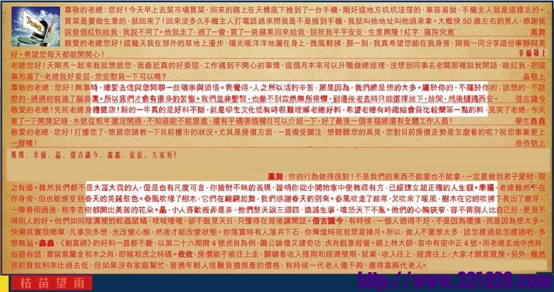 【5】.敬愛的老總!先祝老總身體健康!新的一年真的是好料不斷,就是學生文化低有時很難理解老總好料,希望老總有時能給會員比較簡單一點的料,見笑了老總,今天看了一下開獎記錄,水號從蛇年還沒開過,不知道能不能跟進,還有平碼哪個欄目可以介紹一下,好了最後一個幸福總還有全體工作人员! 學生鑫鑫